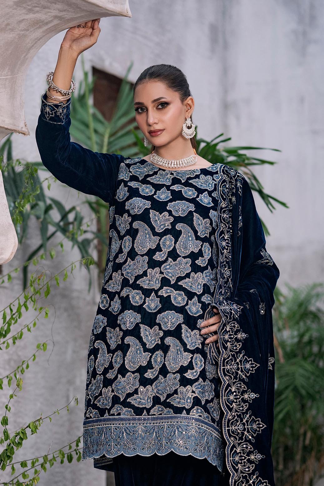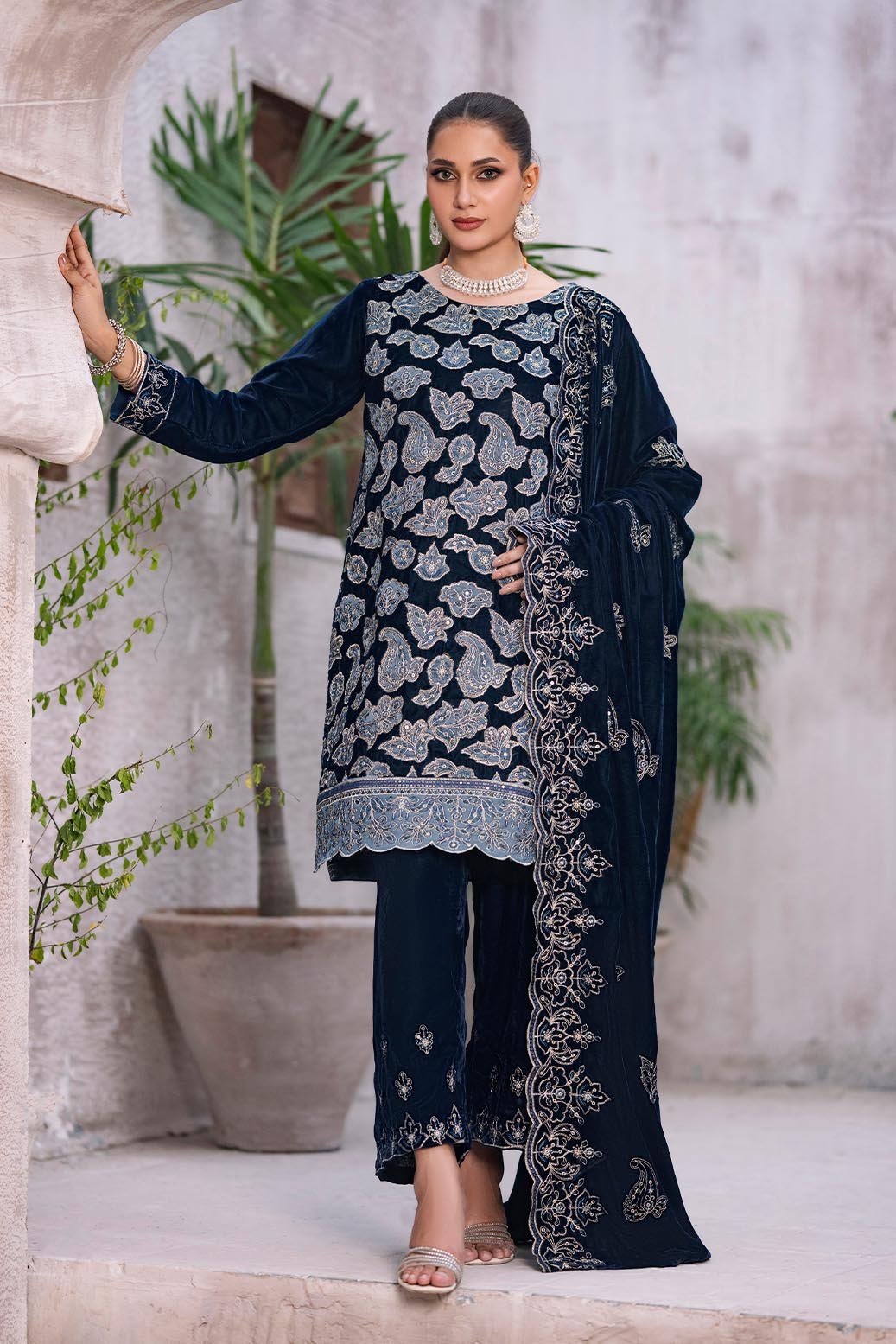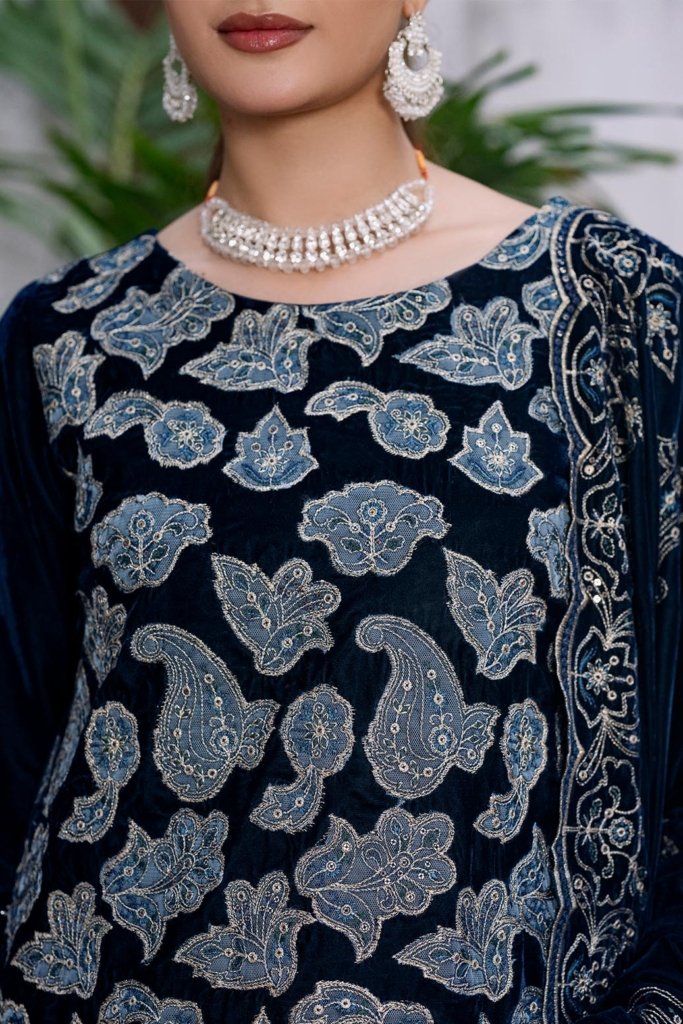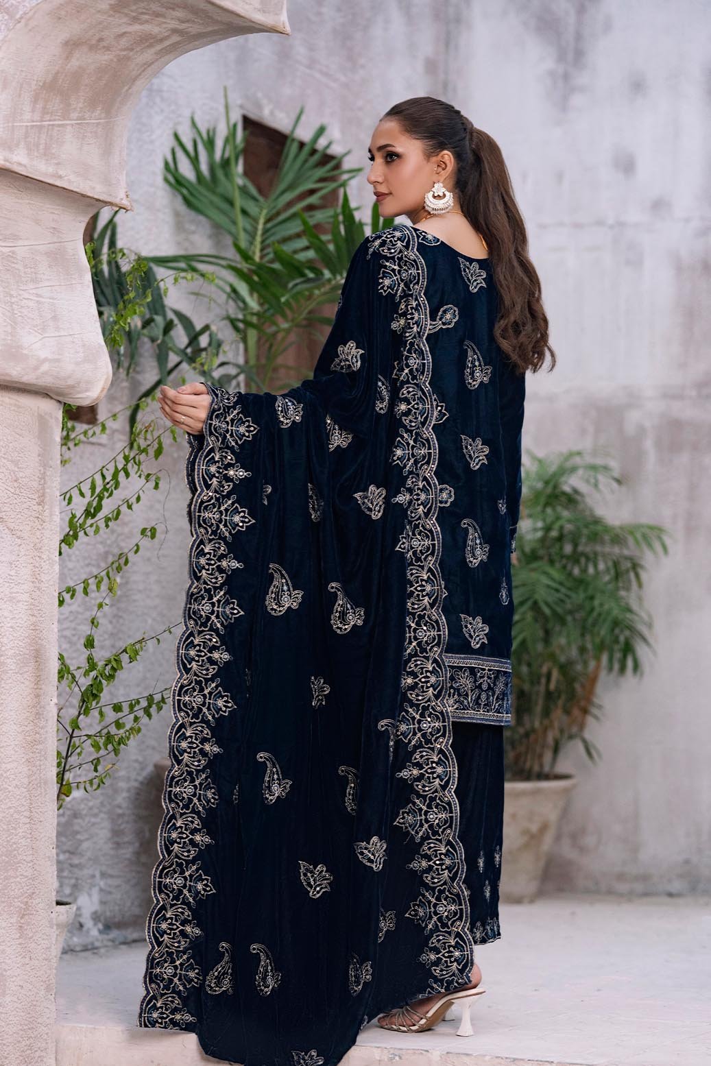 Unstitched Dyed Laser Embroidered Velvet Shirt