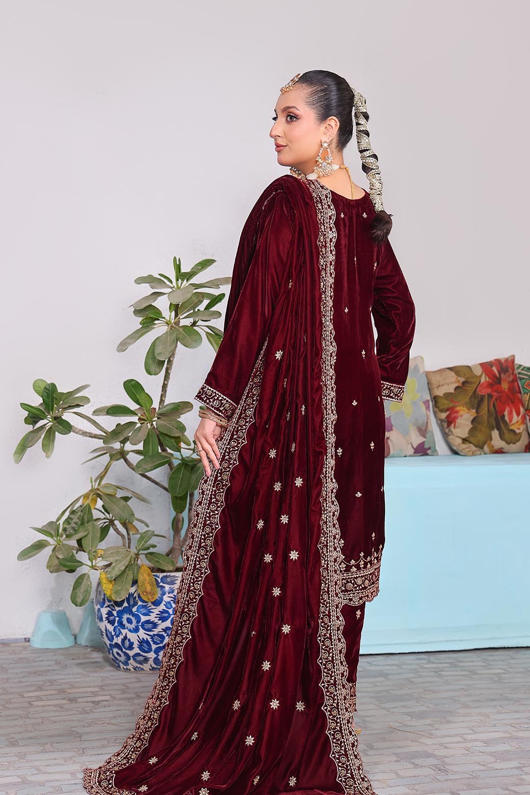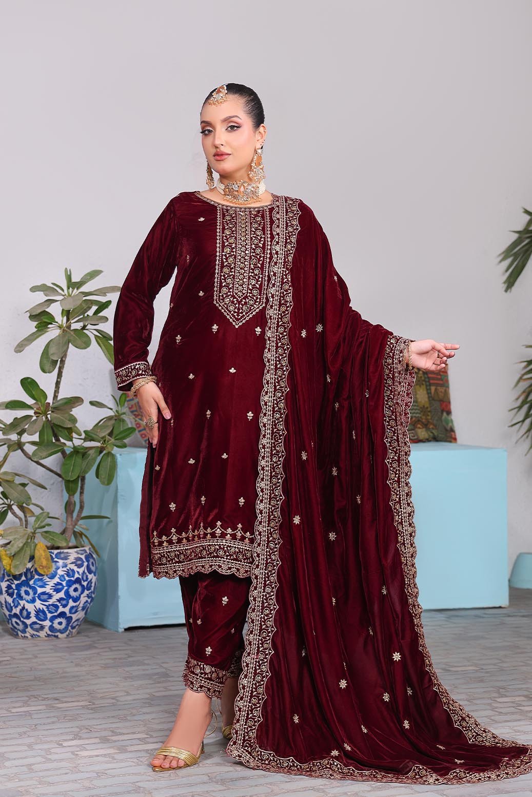 Embroidered Velvet Shawl Dupatta